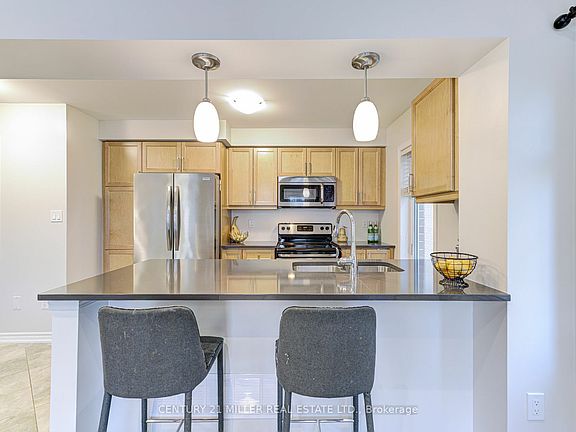 Stunning 3-bedroom END UNIT FREEHOLD townhome offers designer finishes throughout, from sleek quartz kitchen countertops, a breakfast bar and pot lights, to fresh Benjamin Moore Classic Gray paint. Located in one of Oakville's premier neighborhoods, "The Preserve", this home combines style with convenience: a Nest system, fiber-optic high-speed internet for your main floor home office makes working from home a breeze & the August Smart Door lock easily controlled via app are all included. The Preserve is known for its family-friendly amenities & lush surroundings. Nearby trails provide scenic natural escapes, while Kaitting House Parkette is mere steps away. Minutes to Sixteen Mile Sports Complex boasts lit sports fields, cricket field, skateboard park, bike pump track, basketball, pickleball, tennis and volleyball courts, a splash pad, playground and fieldhouse. The 65,000+ sq. ft. community centre features aquatic facilities, fitness/active living centre, flexible multi-use spaces for seniors, youth & cultural programming & gymnasiums. The 18,000+ sq. ft. Oakville Public Library branch offers work & study spaces, a media zone, childrens and teen spaces, public computers and Wi-Fi. Top-rated schools make The Preserve a top choice for families. Excellent elementary options include Gregory the Great, Oodenawi Public, Our Lady of Peace, and David R. Williams. Holy Trinity Catholic Secondary School & Iroquois Ridge High School offer highly-regarded secondary education, with Iroquois Ridge RANKING IN ONTARIO'S TOP 15 HIGH SCHOOLS. For private education, nearby Rotherglen and Trafalgar Ridge Montessori schools emphasize independence & practical learning. Don't miss the opportunity to make this exceptional home yours!