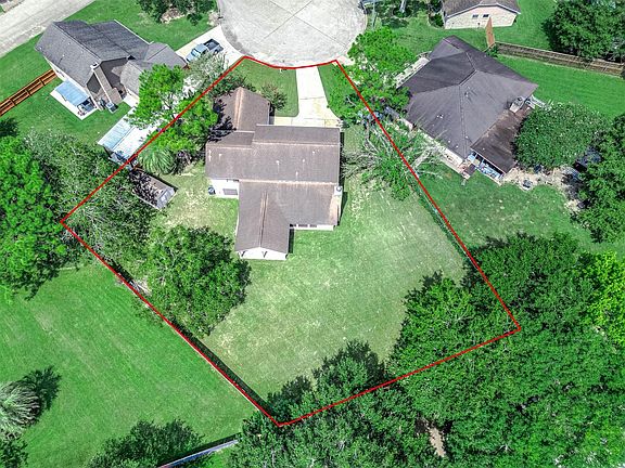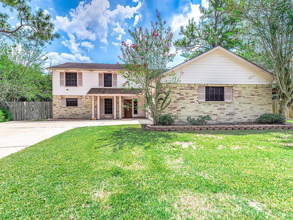 This 4-bedroom traditional sits on a huge cul-de-sac lot with mature trees in a quiet, no-HOA neighborhood. The main living area has a floor to ceiling fireplace & vaulted ceilings with sweeping views of the lot. Classic elements like wooden beams & stairs, brick accents, a wet bar & screened porch add warmth & character. Downstairs offers a balanced, flowing layout with a central staircase anchoring the home, a big den or bonus game room, lots of living spaces & laundry inside. The cozy kitchen features stainless appliances & stone counters with custom cabinetry, breakfast room & attached formal dining which opens to the main living area. All bedrooms are upstairs including a large primary with two walk-ins & all 3 guest rooms feature walk-ins. An oversized 620' garage includes space for workshop, golf cart & storage. Low tax rate. This well-loved home has solid structure & inviting features in & out. Add your personal touches & make it yours.