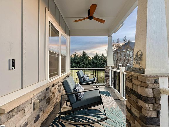 Welcome to 307 Elyan Court — where peaceful mountain views, thoughtful craftsmanship, and modern comfort meet just minutes from Greenville, Greer, and Travelers Rest. Built in 2018, this custom-designed home sits on an oversized cul-de-sac lot (almost 2/3 of an acre) in one of Taylors’ most desirable areas, providing both privacy and convenience. Located near Lake Robinson, Lake Cunningham, and Paris Mountain State Park, this property blends serene Upstate living with easy access to shopping, dining, and award-winning schools. From the moment you arrive, the immaculate landscaping and welcoming front porch set the tone for what’s inside. Step out front with your morning coffee and take in the breathtaking Blue Ridge Mountain views that make this location so special. Inside, you’ll find an open and inviting layout with modern finishes throughout. The great room flows seamlessly into the kitchen and dining areas, creating the ideal space for everyday living and entertaining. The kitchen has been thoughtfully updated with freshly painted cabinetry, new backsplash, custom pantry, new hardware, and updated lighting. Granite countertops, stainless steel appliances, and a large island with seating make it both functional and beautiful. The primary suite serves as a private retreat, featuring two generous walk-in closets and a well-appointed bath with dual vanities, tiled shower, and updated mirrors and faucets. Two additional bedrooms are located on the main level, each with ample closet space and natural light. Upstairs, a spacious flex room with new LVP flooring provides versatility as a fourth bedroom, office, or media space. Recent updates include full interior paint throughout the home, freshly painted doors and trim, new hardware and fixtures, and accent walls in the dining room and primary suite. The fireplace has been newly tiled for a refined focal point. The sunroom was also painted and features sliding glass doors on all sides for year-round enjoyment with heated and cooled comfort. Outdoor living has been elevated with extensive improvements including a new black aluminum fence, additional hardscaping and bedrock, and a concrete patio spanning the length of the home. The backyard also features a motorized Sunsetter awning and a custom fire pit—ideal for relaxing or entertaining. The matching storage building, connected by a paved walkway, provides additional space for tools, lawn equipment, or hobbies. Front and side yards were refreshed with gray slate rock, replacing prior lava rock for a cleaner modern look. Additional enhancements include a custom built-in in the laundry room, customized stair closet, new blinds throughout, and energy-efficient construction with quality finishes at every turn. Located just minutes from downtown Greer and within a short drive of both Greenville and Travelers Rest, this home combines convenience with tranquility. Enjoy weekends at nearby lakes, hiking at Paris Mountain, or visiting local favorites such as Tandem Crêperie, Blue Ridge Brewing, and The Southern Growl. With its prime location, thoughtful upgrades, and beautifully maintained condition, 307 Elyan Court exemplifies refined Upstate living. Every detail reflects pride of ownership and attention to quality, creating a home that stands out for all the right reasons.