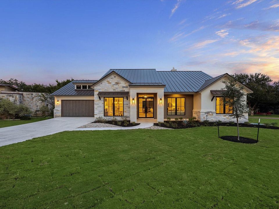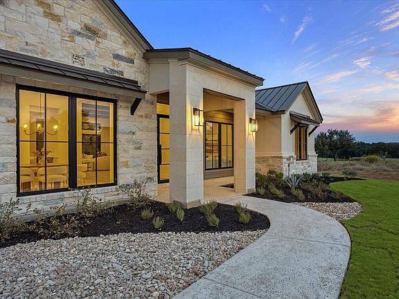 Exceptionally designed one-story home situated on Ram Rock Golf Course. This property is an entertainer's dream with large open spaces and indoor/outdoor living. Chef's kitchen features KitchenAid appliances, quartz countertops and an oversized island. Private primary suite with a spacious walk-in closet and spa-like bath. Two secondary bedrooms each with en-suite baths, plus a dedicated study or bonus room. Covered patio overlooks the golf course and lush backyard with room for a pool. Oversized garage includes a 3rd space for an additional vehicle, golf cart or workshop. Experience resort living with nearby clubs and lake amenities. Move-in ready new construction.