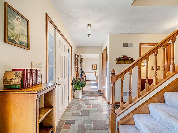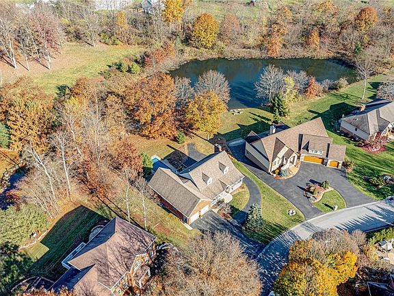 First time on the market...this beautiful and well maintained White's Woods home is the perfect place for friends and family to gather! You are greeted by the large front porch with plenty of room for rockers. The Main floor includes a formal LR, DR, eat in kitchen, family room w gas FP, laundry room and the much sought after First Floor Primary Suite. The primary bath features dual sinks, soaking tub and separate shower. Kitchen has SS appliances and an island for lots of prep space. The deck accessed from the kitchen is so relaxing with a view of the gorgeous lake and the playful ducks! Upper level has 2 large Bedrooms and full bath. The Lower level has an additional 1000 sq ft of finished space to include a 4th BR with ensuite and walk in closet, a game room and a very large den. The sliding door provides walk out access to your inground pool, patio and a park like setting! A third garage space is accessed from the back and has a large workshop. Don't let this home pass you by!