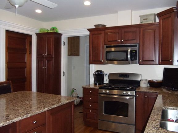 A wonderful home with many upgrades!! New kitchen includes cherry Cambridge cabinetry by Brookhaven, granite counter tops, new sink, new stainless steel appliances, large family sized island and beautiful oak floors. The oak floors extend throughout the large family room, living room and grand staircase foyer! There is a 1st floor bath and laundry room. The 2nd floor has 4 bedrooms and a bath. Full walk up attic which is great for storage. Great carport/patio, and a 2 car garage plus a 3rd garage for storage. Newer roof, updated electric, vinyl windows, gas fireplace, kids coat area too!