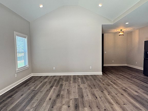 Inside, you'll find an inviting open-concept layout featuring a 14'9" x 15'8" living room with vaulted ceilings and LVP flooring throughout. The kitchen showcases crisp white cabinetry, a quartz countertop workspace, and an LG stainless steel appliance package, along with a 10'1" x 9'10" dining area. The main bedroom features a spacious 6' x 4'10" closet, while all bedrooms include ceiling fans. The main bathroom offers a luxurious marble tile shower, and the second full bath provides added convenience. The laundry area includes a stackable washer/dryer closet, and spray foam insulation throughout enhances comfort and energy savings year-round.