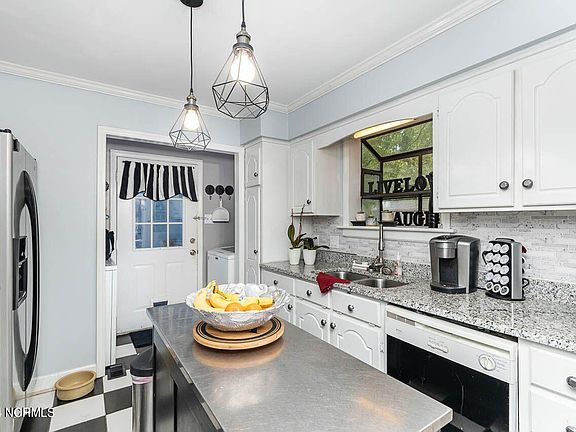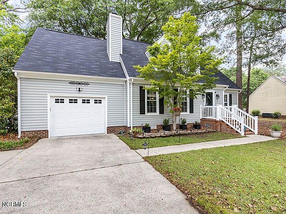 Lovely Cape Cod home featuring 3 bedrooms, 2 1/2 baths. Primary bedroom is on main floor with ensuite. Ensuite recently remodeled with large tiled walk in shower. Kitchen offers granite countertops and portable center island. Upstairs offers 2 bedrooms separated by a large living area plus a full bath. Lot features mature trees and nice landscaping. Enjoy relaxing under your pergola in your fenced back yard with wired shed. Walk within 1000 feet to the community pool. Roof, water heater, and garage door were replaced in 2022, HVAC, Goodman 3 ton was installed in 2020. Home is ready for you to make it your own. Conveniently located within 5 miles of Seymour Johnson Base, Berkley Mall, major highways and less than a mile to grocery stores.