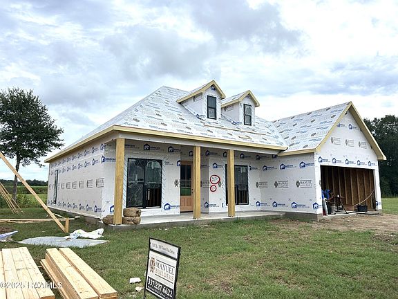 Nestled in a quite Gated Community Magnolia Trace is located minutes from HWY 90 and Youngsville Sports Complex's. Welcome to the Aden Farmhouse, a beautifully designed new construction home offering 3 bedrooms and 2.5 baths. Step inside to a spacious living room featuring 11' ceilings with recessed tongue and grove tray, a ventless gas fireplace, creating a warm and inviting space. The chef-inspired kitchen boasts a gas slide-in range with a custom hood vent, stainless steel appliances, 3cm quartz countertops, under-cabinet lighting, an undermount sink, and custom-built cabinetry for both style and function. Nice size dining area with gypsum beams. Luxury vinyl plank and tile flooring flow throughout the home, while the primary suite offers a spa-like retreat with a custom-tiled shower and two separate closet areas. All bedrooms have walk in closets. Exterior features include a stained fir wood front door, architectural high-definition shingles, fixed wood shutters, up to 10 pallets of sod, and a privacy fence--delivering both curb appeal and outdoor comfort. Plus, enjoy the energy efficiency of a tankless water heater for endless hot water. Enjoy the beautiful shaded by mature oak trees, combining convenience of regular lawn, landscape services and annual pressure washing to ensure a beautifully maintained environment year-round. This family-friendly neighborhood features a playground, basketball court, tranquil pond, and a dog park, creating an ideal setting for connection, recreation, and relaxation. Whether you're a first-time buyer or looking to build your forever home, Magnolia Trace offers a lifestyle you will love. Schedule your showing today!