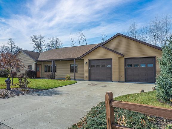 Enjoy the ease of one-level living in this beautifully designed home featuring 3 bedrooms, including a primary en suite for added comfort and privacy. French doors open to a versatile bedroom or office space, while the back patio overlooks acres of wooded land—perfect for bird watching and wildlife viewing. Outdoor gardening enthusiasts will love the raised garden beds, and a dedicated pollinator garden. The large heated and finished garage offers ample space for vehicles, hobbies, and storage. LeafGuard gutters add extra convenience and help improve the flow of rainwater away from the home. Located in the quiet and peaceful Whispering Waters subdivision, you’ll enjoy access to walking trails and a serene natural setting right outside your door. Book your showing now and picture yourself on Greenview Circle!