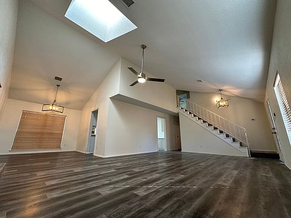 Wood burning stoveFresh paintDining roomAttic storageEat-in kitchenVaulted ceilingNew appliances in kitchen