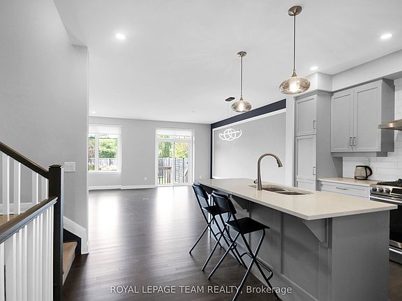 Welcome to 307 Kilspindie Ridge, an executive end-unit townhome by Uniform Homes in the heart of the prestigious Orchard of Stonebridge. This beautifully maintained 3-bedroom, 3-bathroom home offers a bright open-concept main floor with hardwood throughout in the common areas, a modern kitchen with quartz countertops, high-end backsplash, and stainless steel appliances, and a cozy gas fireplace in the living room. Upstairs, the spacious primary suite features a walk-in closet and luxurious ensuite, complemented by two additional bedrooms, a full bathroom, and the convenience of second-floor laundry. The finished basement provides a large recreation room, extra storage, and a den perfect for a home office or gym. Outside, enjoy your private backyard oasis with beautiful landscaping, ideal for family gatherings and quiet evenings. With a single-car garage, driveway parking, and close proximity to parks, schools, Stonebridge Golf Club, Barrhaven Town Centre, shops, and public transit, this home combines elegance, comfort, and convenience in one of Ottawa's most desirable communities.
