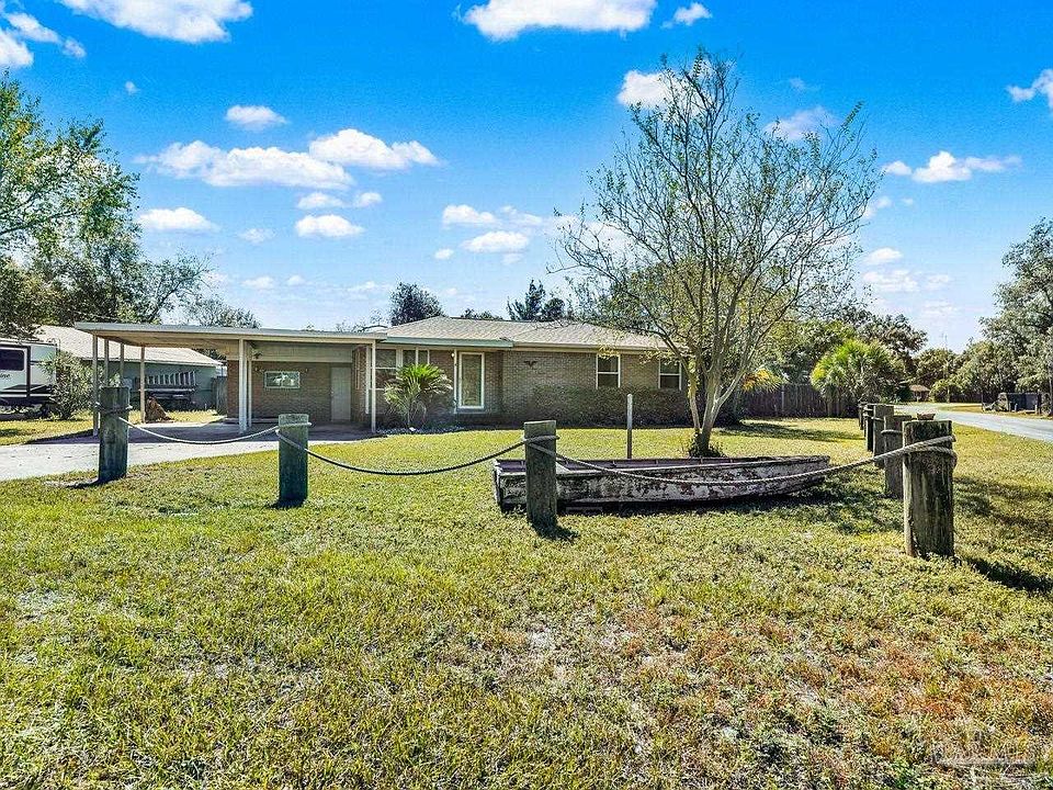 Step into timeless character with this charming 1949 brick bungalow. Featuring 2 bedrooms, 2 and 1/2 bathrooms, with some of the original hardwood floors. This home has vintage appeal! With just a few updates, it would make a beautiful home or a profitable short term rental. Enjoy relaxing or entertaining in the large screened patio overlooking the sparkling in-ground pool with a new liner installed in 2021. The roof (2017), central HVAC system (2020), and water heater (2020) provide peace of mind and energy efficiency for years to come. The house has been rewired and has opening protection for hurricanes. Outside, the 2-car carport and workshop/storage room offer plenty of space for projects, hobbies, or extra storage-adding potential to be additional living space! Sitting on a corner lot, this property provides great curb appeal and room to enjoy the outdoors. Located just down the street from a boat launch, this home is perfect for those who love the water, and it’s conveniently close to NAS Pensacola and downtown (only 3 miles away), offering easy access to shopping, dining, and entertainment. Don’t miss your chance to own this classic bungalow pool home with an easy commute, for a fantastic price!