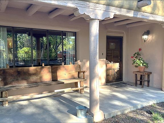 This traditional Taos property sits on two lots in the historic Lund subdivision of downtown Taos. The main house, in Pueblo/Southwestern style, has 3 bedrooms and two bathrooms, while the charming casita has one bedroom, one bath. Built in 1951, the 1,392 sq.ft. main house has a fireplace, galley kitchen, and separate laundry room. House has hot water baseboard heating with an additional wall heater in the livingroom. The generous front and back yards provide ample space for gardening and entertaining. The main house also has two attached carports. Original pecan wood paneling and built-ins throughout. Property features preserved authentic, retro design elements that are hard to find today. Update or restore this original and unique architectural home in the historic Taos district. The one-bedroom, 762 sqft casita was built in 1987 and has new Sierra Vista windows and metal roof, with wall heaters in the bedroom and living area. The casita has a large, private yard with several patios. Walk to everything in downtown Taos, including the historic Taos Plaza, the Taos Inn, the Harwood Museum, restaurants and shops. Fast, fiber-optic internet available in both houses.