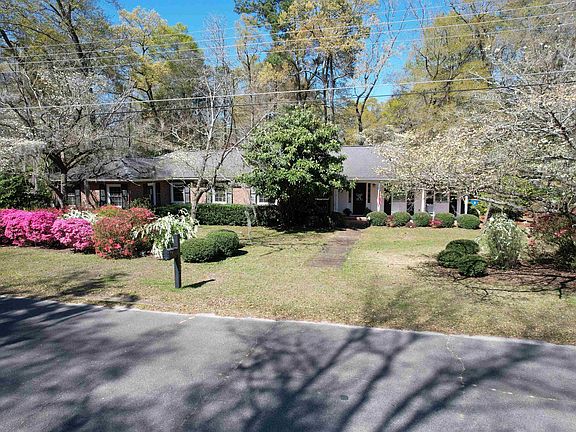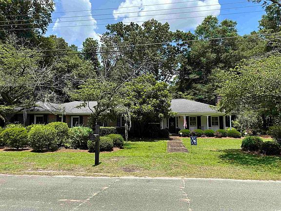 This brick, ranch-style home is over 2,500 square feet on a large corner lot in Kingstree. It has a really unique floor plan and it's a great layout for a family. Just beyond the front porch is a foyer that leads to a large formal living room, which spans the end of the house and is flanked by a fireplace. Adjacent to the living room is a formal dining room that leads to the kitchen. The kitchen's windows look over the size yard and driveway, while opposite french doors open to a courtyard and the backyard. There is a small dining area in the kitchen and another small area that could be used as a sitting area or office space. Beyond the kitchen is a den with custom cabinetry and a large brick fireplace. Down the hall, there are four bedrooms. One bedroom has an attached half bath. There is another hall bathroom, and the two bedrooms at the end of a hall that share a jack and jill style bathroom. Laundry is also accessed from the hall. The house also has an attached carport that is accessed from 2nd Avenue, and there are two closets/storage spaces. At the front of the property is a circular structure that can be used for storage, a studio, or small office. This structure was victorian-style turret that was atop an old home in Kingstree that was torn down a number of years ago. This is a lovely home that has been meticulously cared for over the years. The property is full of old azaleas, camelias, dogwoods, and pines, which provide extra privacy and charm.