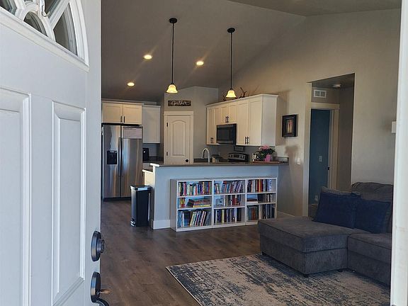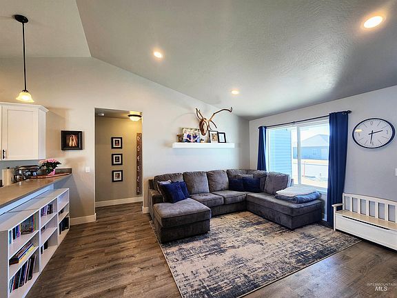 ATTRACTIVE 3 BR 2 BA BEAUTY with 2 car garage in the Riverwalk subdivision in Burley. Centrally located to Burley and Heyburn, you are just minutes from shopping, a movie, mini-golf, the freeway on ramp and more! Sit on your covered front porch and enjoy gorgeous sunsets! Great property for first, last or investment home buyer! Open concept split floor plan offers a spacious kitchen with breakfast bar, adjacent dining area, and nice pantry! Sliding patio doors lead out to the very spacious fenced yard, complete with sprinkler system. The living room features a striking accent wall. Vaulted ceilings open up the space, adding the character that you’ve been looking for! Your new home is complemented with vinyl plank flooring and neutral colors, and is move-in ready! Primary bedroom includes a primary bath and a walk-in closet. Leading to the garage you will find a separate laundry room and best of all, a roomy drop zone! EZ low maintenance!