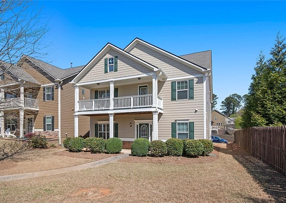 Welcome to your next home in the desirable Cornerstone Estates subdivision! This gorgeous Charleston-style home is situated on a premium lot overlooking the neighborhood green space. A short walk to the pool and community amenities make this beautiful open-concept home a great opportunity in a sought-after area. Sprawling hardwood floors flow throughout the main level complimenting the stainless steel appliances in the huge kitchen. Roof is 3 year old architectural shingles. Exterior painted 2021. Yard maintained by HOA.A second story balcony overlooks the community amenities and is perfect for relaxing or entertaining. Top rated Woodstock Schools!