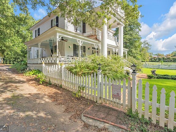 Built in 1827, this stunning Greek Revival is a true standout! With sparkling crystal chandeliers, a hand-painted mural of Georgia's flora and fauna, and those iconic columns, it's full of charm and character. The spacious porch and second-story balcony add to its inviting feel. Inside, you'll love the wide central halls, double parlors, formal dining room, and multiple ensuite bedrooms (two on the main level!). The grounds are just as special-gardens, a patio with fireplace, plus a guest cottage and workshop make it perfect for entertaining. And here's the best part: it's not in the historic district-so you get all the beauty and craftsmanship of an 1800s home with more freedom than most! Add in a location just steps from the downtown Square with its restaurants and shops, and you've got something truly rare.