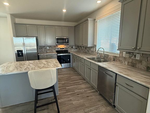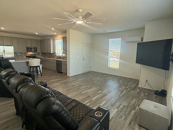 New 2025 Cavco Home located in a highly desired area of Gila Bend Estates. Sit on large lot size of 10,635, with block fencing. This model features a front patio, seller paid extra for larger windows through out, as well as the large model making bedroom a great size. When you walk in you will notice large living rooms space with an open floor plan to the kitchen and full size dinning room. Vinyl wood flooring, can lighting, ceiling fans, blinds, through out the entire house. Kitchen features gray 42' cabinets, island, sink in front of the window, lots of counter space and cabinets, back splash, SS appliances, refrigerator included. Home has a large laundry room and larger bedrooms, as well as huge restrooms. Home has 2 additional mini splits installed. Must see!