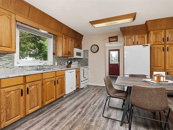 Wow, this property truly has it all! Set on an expansive 132x250 ft lot, this home offers space, comfort, and pride of ownership throughout. As you enter through the back door, you're welcomed by a spacious mudroom/laundry area and a large 4 piece bathroom. The kitchen and dining area are generously sized, perfect for hosting family gatherings, with ample countertop and cabinet space to meet all your cooking and storage needs. The primary bedroom is conveniently located on the main floor, just steps from the cozy living room. Upstairs, you’ll find three additional bedrooms and a bright office space, ideal for a growing family or remote work setup. The basement is unfinished and offers plenty of storage space. The home is equipped with a high-efficiency furnace and an on-demand hot water tank, ensuring both comfort and energy efficiency. Step outside to a beautiful backyard with no rear neighbors, several storage sheds, and a large garden area ready for your green thumb. The extra long driveway can easily accommodate up to 6 vehicles or a large RV. Don’t miss your chance to own this incredible property in the Village of Heisler, located in the heart of Flagstaff County, a wonderful place to call home!