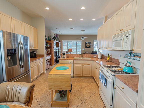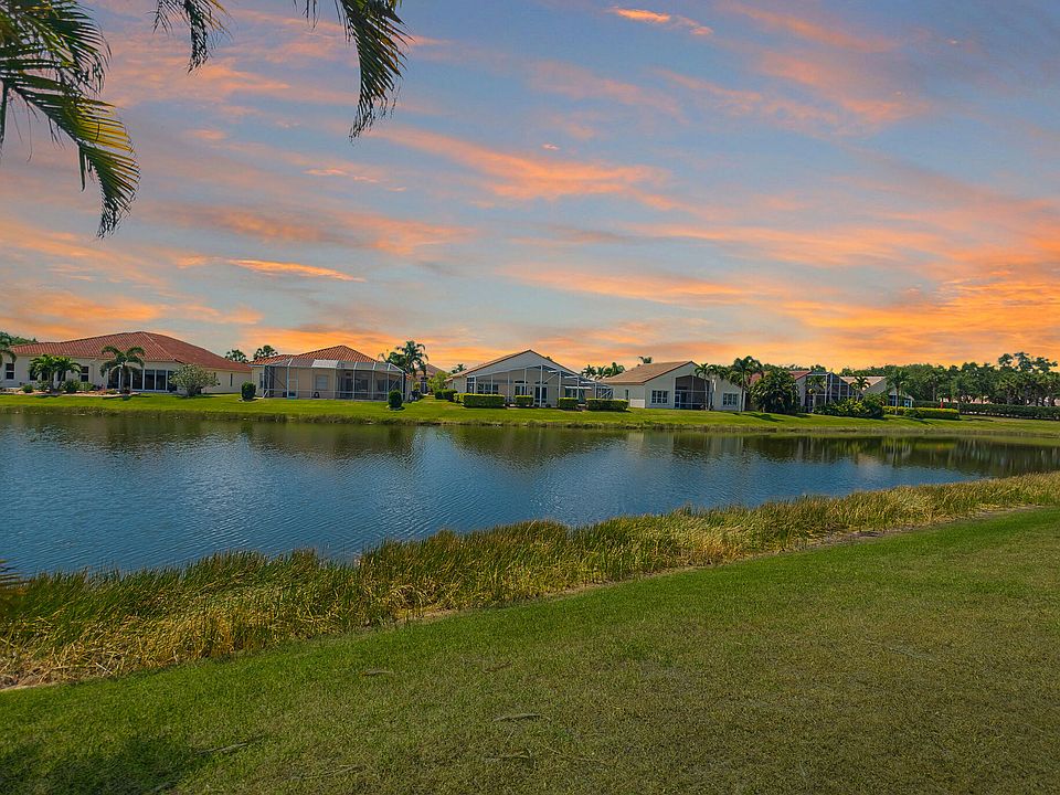 Welcome to this beautifully maintained 2-bedroom, 2-bathroom + den waterfront home located in The Cascades, a premier 55+ gated community offering resort-style living. Enjoy stunning wide-water views from the spacious covered and screened lanai -- the perfect space for morning coffee or evening relaxation. The open floor plan features generous bedroom sizes, plantation shutters, and diagonal tile in the main living areas. The kitchen features gas cooking, ideal for those who enjoy cooking. HOA dues include lawn care and cable for added convenience. Residents enjoy top-tier amenities including golf, tennis, pickleball, a clubhouse, resort-style pool, and more. Experience Florida living at its finest!