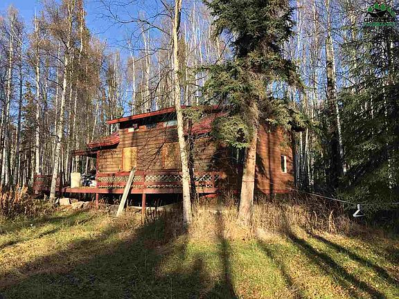Spacious cabin just 45 minutes south of Fairbanks and only 10 minutes from the city of Nenana sits a spacious cabin on 3.5 wooded acres! Located in Cotter Subdivision, this cabin features plenty of space to explore the endless trails on snow machines and ATVs right outside your backdoor, or raise your dog team right on the property. These trails will take you all the way to Minto! Solid built cabin with lots of space includes 2 bedrooms, a loft, kitchen with updated cabinets, and a large wood stove to keep everyone warm throughout winter. With a little bit of TLC, this cabin can be your Alaskan dream home! Cabin comes with recent upgrades to include new egress window in main level bedroom, new water heater, new water softener, new pressure tank, and update septic system. Front porch has been removed due to heavy snow load this past winter but ready for new buyer to rebuild! Property being sold "as is."