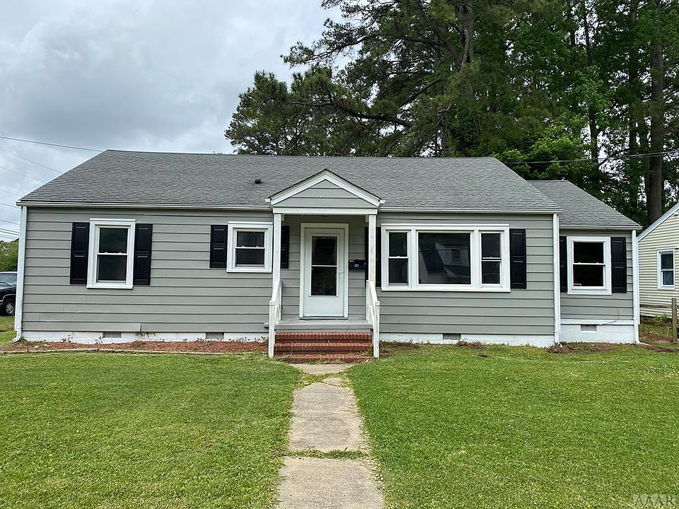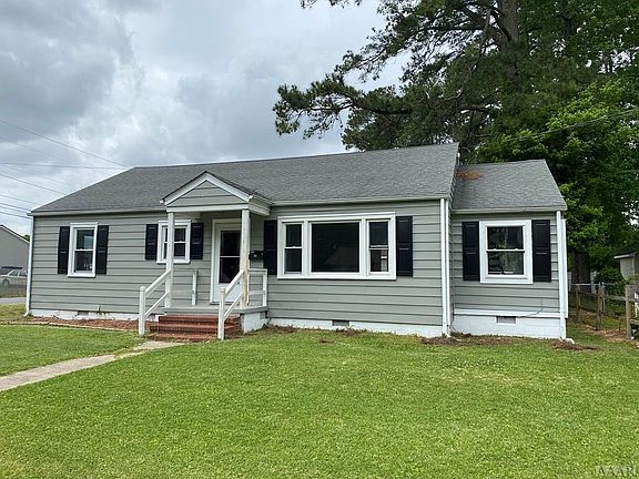 Renovations going on so more interior photos will be coming soon. 3BR 1 bath one story home with eat-in kitchen and room on the right end of house that could be a dining room or den and opens onto a deck in the back of the house. Detached garage behind house with power. Close to everything with only one neighbor! Air to air heat pump, carpet and vinyl flooring. Kitchen appliances: refrigerator, dishwasher and smooth-top cookstove-oven (electric) will stay.