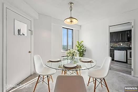 Welcome to your sun drenched oasis located in the heart of the City of Hackensack and premier Prospect Avenue! This stunning 2 Bedroom, 2 Bathroom corner unit condo offers an unparalleled lifestyle combined with breathtaking NYC views. Located on the 16th floor of a modern high rise, this home is designed for comfort and sophistication. As you step inside, you'll be greeted by an open concept living space with formal attributes with natural sunlight and your very own Private unobstructed Balcony overlooking the City. A contemporary kitchen boasts sleek stainless steel appliances and beautiful tiled floors and an incredible view. The spacious living room seamlessly flows into your formal dining room overlooking NYC. An ideal space for hosting family and friends or enjoying a quiet evening at home. Retreat to your primary en-suite with Full bathroom. Your second bedroom is perfect for guests or can easily be transformed into a home office. Experience the best of high-rise amenities, including outdoor lap pool, Fitness room/gym, Library and Sauna. Secure deeded garage parking and 24 hour concierge elevate your living experience. NJ transit Bus stop located outside building with train minutes away! Visitor garage parking, within minutes to HUMC, shopping, restaurants and parks. Ideal for those seeking a vibrant city lifestyle without sacrificing comfort and solitude. Don't miss this opportunity to own a piece of luxury in one of the City's most sought after buildings.
