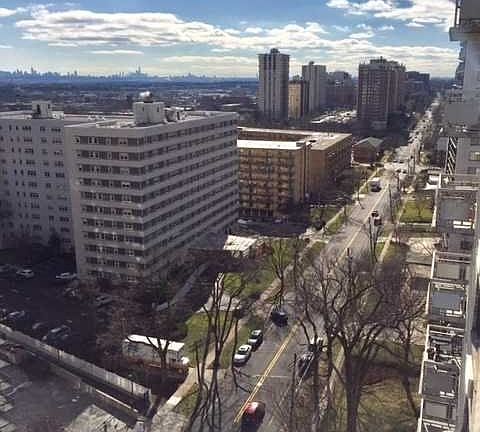 Enjoy the spectacular view from the terrace facing east for summer cookouts on an electric grill. Oversized living room with gleaming hardwood flooring. The dining area is large enough for a good sized dining table. Galley kitchen with granite counters and stainless appliances. Generously sized bedroom with a double closet. Tiled bath with shower over tub. This building is FHA approved and 3.5% down payment may be possible. Building amenities include: outdoor pool, exercise room, 24 hour doorperson, laundry on floor, and garage parking for one car. NYC bus is half block away, two train stations to Hoboken. Convenient to shopping, HUMC (Hackensack University Medical Center) and all major highways.