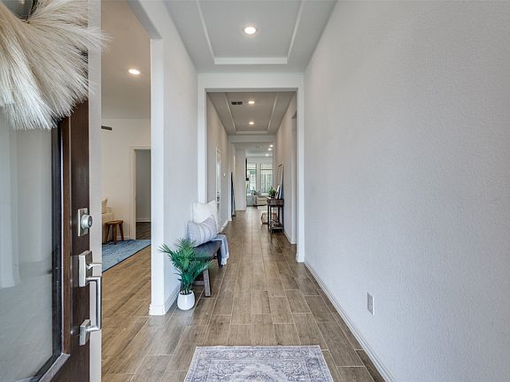 This home features a flexible second living room that connects to its own bedroom, creating the perfect guest quarters, teen retreat, dedicated child playroom, or work-from-home setup. A rare layout that offers unmatched versatility. Numerous upgrades add comfort and peace of mind, including a Ring® smart security system, dimmable lighting package, two water heaters in the garage, automated and programable foundation drip, sprinkler system, side fence has been extended 6' for additional privacy, and brick-and-stone landscaping. Energy-efficient construction and a Taexx® in-wall pest control system complete the home’s modern appeal.