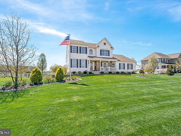 Welcome to Your Forever Home! Located in the highly desirable Jockey Hollow II Development and the award-winning Smyrna School District in Clayton, this is a rare opportunity to own a stunning, move-in-ready home on a premium .66 acre lot with one-of-a-kind views! Backing to approximately 100 acres of open space the community offers a tranquil country feel while still being just minutes from Highway 95, Route 1, the beaches, and only 15 minutes to Middletown. This home has been meticulously maintained, and pride of ownership shines throughout every detail! As you approach, you’ll immediately notice the beautiful stone front porch—a warm and inviting welcome to what lies inside. Step through the front door and fall in love with the open-concept layout, 9-foot ceilings, and richly upgraded engineered hardwood flooring that spans the entire main level. The home feels bright and airy, offering both space and style. The gourmet kitchen is a true centerpiece, featuring updated maple cabinetry with crown molding, granite countertops, and a custom tile backsplash that ties everything together seamlessly. You'll enjoy cooking with your double oven and glass cooktop, while updated stainless-steel appliances (many still under warranty) add function and flair. The spacious pantry offers plenty of storage, and the built-in coffee/wine bar—complete with under-cabinet lighting and its own stainless-steel sink—adds a special touch for both everyday convenience and entertaining. Natural light pours through oversized windows, filling the space with warmth and offering breathtaking views of open farmland and nature as your daily backdrop. The family room features a vaulted ceiling and a stunning granite-surround gas fireplace—the perfect spot to relax during cozy winter evenings. A beautifully renovated guest bathroom on the main floor continues the farmhouse charm with a new vanity, sink, lighting, and farmhouse mirror. Upstairs, discover four generously sized bedrooms, including a luxurious primary suite with vaulted ceilings, engineered hardwood flooring, and a spacious walk-in closet. The primary bathroom is spa-inspired with a double vanity, upgraded lighting, glass walk-in tile shower with a rain shower-head, and a large soaking tub perfect for unwinding after a long day. The updated barn-style mirrors and farmhouse lighting complete the tranquil retreat. Three additional bedrooms offer neutral, updated paint, ample closet space, and modern ceiling fans. The second full bathroom includes ceramic tile flooring, a double sink vanity, and shiplap accents, continuing the farmhouse theme. Convenience is key with a second-floor laundry room, complete with a new washer and dryer set still under warranty and a nearby linen closet. The full walkout basement is clean, dry, and full of potential! A new water filtration system, whole-home dehumidifier, and standing freezer are already installed. Whether you envision a home gym, theater room, play area, or guest suite, the possibilities are endless! Step out back to your own private oasis. The 10×20 deck has been professionally upgraded with TimberTech decking, vinyl/metal railing, and a stunning white vinyl pergola that adds shade without blocking your view. Just below, an expansive 40×25 stamped concrete patio—styled to look like wood—offers room for relaxing, dining, and entertaining. Enjoy the built-in fire pit on cool evenings, and updated outdoor lighting keeps the space beautifully lit after dark. On hot summer days, take a dip in your sparkling saltwater pool, featuring a color-changing light for magical night swims. The fully vinyl-fenced backyard ensures safety for kids or pets and includes double and single gate access. A 10×12 barn-style vinyl shed adds extra storage for outdoor gear. Additional features include a 3-car garage with upgraded 8' tall doors, permanent outdoor lighting, and a modern security camera system—all easily controlled from your smart device.