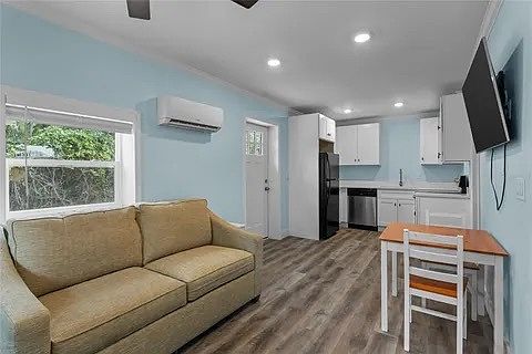 Includes washer/dryer and new stainless steel stove dishwasher and refrigerator. Private parking off street. New engineered hardwood flooring throughout with a new bathroom and kitchen. Brand new roof. This is a very bright open stand alone cottage that would be perfect for NSB living.