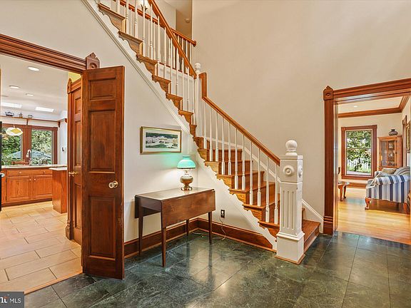 Nestled in a private, landscaped oasis in sought-after Falls Church City, on a quiet cul-de-sac, this *GORGEOUS* 6-bedroom, 3.5-bath Victorian home offers the perfect blend of timeless charm and modern luxury across three fully finished levels. Just minutes from the East Falls Church Metro, the Falls Church Farmers Market, and top-rated Falls Church City schools, the location boasts both privacy and convenience (and a high WALK SCORE). Inside, you'll find a grand two-story foyer, elegant living and dining rooms with custom details including crown molding, a crystal chandelier, and marble fireplace mantels. The gourmet island kitchen features granite countertops, Sub-Zero and GE Profile appliances, a skylit eat-in area, and an adjoining mudroom. A sunny family room with windowed turret, built-ins, wet bar, and fireplace adds warmth and character, while a main-level office (or sixth bedroom) offers flexibility. The primary suite is a luxurious retreat with a fireplace, walk-in closet, sitting area, and spa-inspired bath with frameless shower, marble tile, and dual vanities. Additional spacious bedrooms, a full hall bath, and a beautifully finished lower level with a rec room, wet bar, extra bedroom, full bath, laundry, and storage complete the interior. With fresh paint, a two-car detached garage, and high-end updates throughout, this move-in ready home is an exceptional opportunity in the heart of Falls Church City!