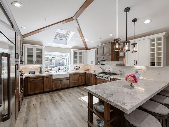 One of 4 custom builds in this development, this home is premium, luxury, style, functionality and efficiency! Stunning $200k+ kitchen remodel will take your breath away with it's custom quartz counter-tops, top of the line (of course) stainless steel appliances including a beautiful gas stove, wine refrigerator, large refrigerator, garden window, high ceilings, THE WORKS! A "must see" indeed! Spacious and flowing floor-plan that features a great room that is popular and desired by today's home buyers. SPACIOUS Primary suite features high ceilings, lots of windows, walk-in closet and a jaw-dropping primary bath with natural stone, large walk-in shower and a beautiful high-end tub. All bedrooms are spacious with plenty of closet space. The guest bathroom that serves the 3 other bedrooms is just... WOW! A recent $100k+ remodel that features premium fit and finishes, a steam shower (so awesome) and beautiful vanity with touch mirror and heated floor. Simply elegant and stunning! And YES, a 4 CAR TANDEM GARAGE for your cars and all your toys! Wait until you walk into your back yard with premium stonework throughout, built-in BBQ, fireplace, hot-tub area, waterfall fountain and automatic awnings. Newer 50yr roof, solar, top-of-the-line water purifying system. A MASTERPIECE OF A HOME!