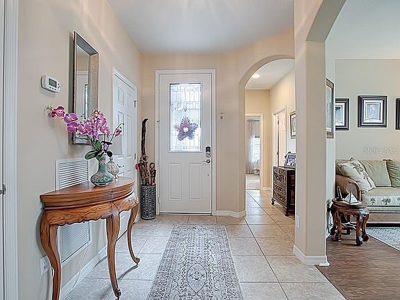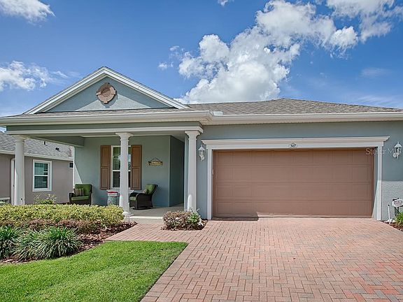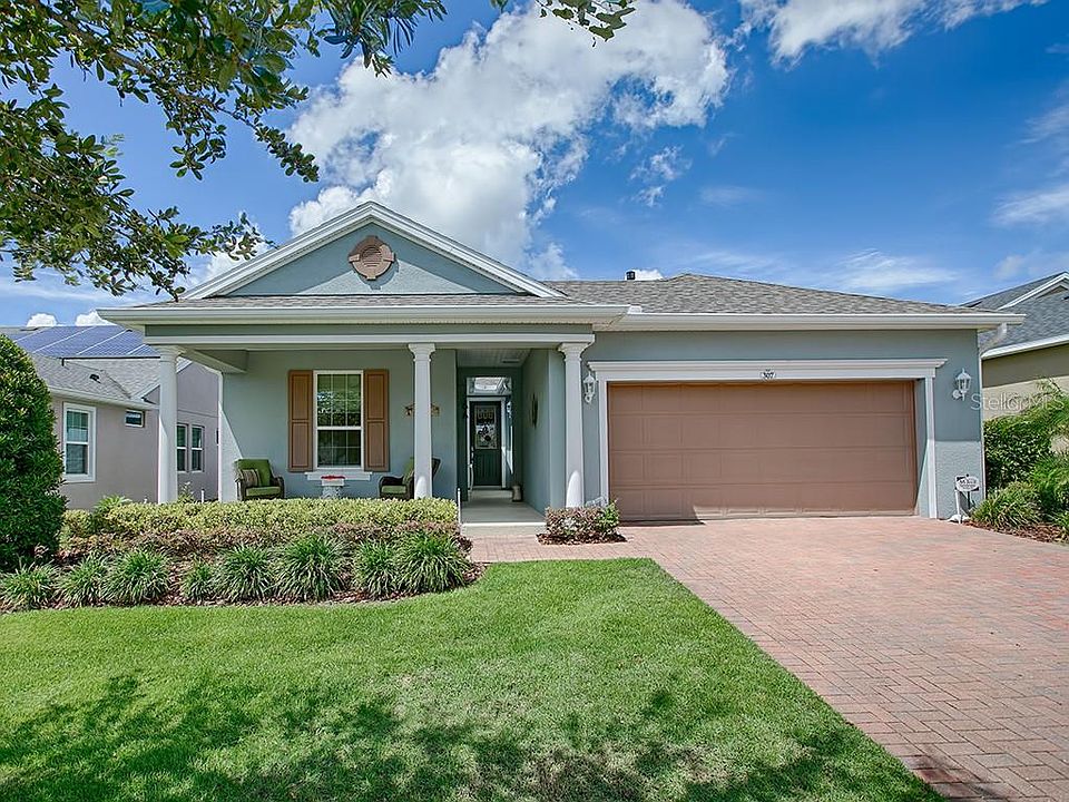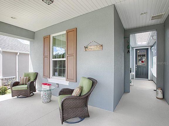 Welcome to Trilogy. Grab your morning coffee or tea and watch the sunrise from your front porch or sip on wine and watch the sunset from your screened in lanai. This most popular Heather model is located in Phase 2 where the lots are spaced further apart and your mail is delivered to your mailbox at the foot of your driveway. A great house for entertaining, the home has a huge kitchen with granite countertops, wood cabinets with crown molding, pullout shelves, pots and pan drawers, a ceramic backsplash, breakfast bar and Jenn Aire appliances. Off of the kitchen, the smart room not only has washer, dryer and laundry tub, but a built in desk area with additional built in cabinets to provide an area for additional office space, crafts or sewing . The master suite features a large walk in closet, double sinks, private toilet area and huge stall shower. Just imagine an electric bill that averages $15 per month during the hot Florida summer because this house has a full solar package. Ceramic tiles are featured in the entry hall and laundry room; and the floors in the main area, den and master bedroom are wood like laminate. Sliding doors lead to the screened in lanai and a back patio which looks onto a private back yard with no neighbors behind you. This home is immaculately maintained and is move in ready. Trilogy is a 55+ resort style living community. It boasts a 57,000 sq. ft. clubhouse which offers an outdoor and indoor swimming pool, 3 spas, a restaurant, card rooms, billiard rooms, and artesian studio, motion studio, fitness center, tennis, pickleball and so much more. There are all types of activities and clubs as well. It offers the kind of retirement lifestyle you dream of. Come make your dreams come true.