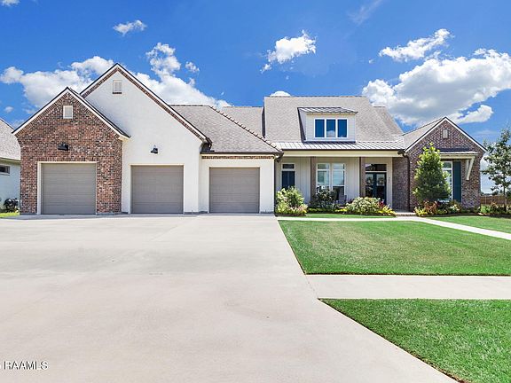 Welcome to luxury living in Le Jardin d'Abel Subdivision, perfectly situated near thecenter of Youngsville. This custom-built home by Milton Hebert, one of Acadiana'spremier builders, was designed with functionality, opulent luxury, and entertaining in mind. Upon entering, you are embraced by a warm and inviting living space, distinguished by custom-beamed ceilings, expansive windows bathing the area in natural light, and a ventless gas fireplace, flowing effortlessly into a formal dining area. Culinary aspirations come alive in the kitchen, equipped with a gas cooktop, wall oven, pot filler, and bespoke cabinetry, complete with spice racks, and utensil holders. A thoughtfully placed butler's pantry and a walk-in pantry offer ideal solutions for a coffee bar or housing small appliances, enhancing both convenience and style. The intelligently designed split floor plan further reveals a home office with a built-in desk, a spacious laundry, and a practical drop zone just inside from the garage which boasts a pull-through door providing direct backyard access. Retreat to the luxurious master suite, offering a freestanding tub, a custom-tiled walk-in shower with a refreshing rain head, and a walk-in closet. Step outside to discover an outdoor oasis, designed for relaxation and entertainment, featuring a large covered patio with a fireplace, complementing a full outdoor kitchen area, all resting on an epoxy-coated concrete surface. Beyond lies a magnificent inground pool, surrounded by ample space for lounging and entertaining, bordered by a serene garden area adorned with river rock on one side. Peace of mind comes courtesy of a natural gas generator, ensuring comfort during any season, complemented by two tankless water heaters and a full-home water filtration and water softener system. This exceptional residence sits on a large lot - a true rarity in modern subdivisions - providing unparalleled privacy and expansive backyard space for endless possibilities.