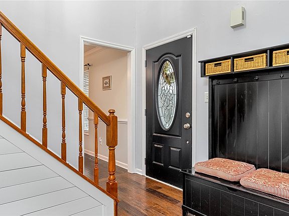Extraordinary materials meet impeccable taste in this lovely home. The front covered porch greets you. The natural lighting in the 2 story foyer welcomes you while the front hall leads to either the dining room or the living room being staged as an office. Exciting floor plan design boasts shiplap accents, gorgeous wood flooring, and fresh neutral paint offering clean white accents. A bright chef's kitchen featuring loads of granite counters, tasteful gray cabinetry, white subway tile, deep farm sink, stainless steel appliances plus an eat-in-kitchen island. A door in the kitchen allows one access to the expansive low maintenance deck which offers dimmed lighting for stargazing. Stunning Owners suite offers shiplap accent wall, catheral ceiling, & new luxury vinyl floor. Owners en suite bath boasts vaulted ceiling, large surround tile shower w/frameless door, dual sinks, wooden cabinetry, ceramic floor & 2 closets. 2nd flr laundry is a bonus! Abundance of recessed lighting. MoveRtIn!