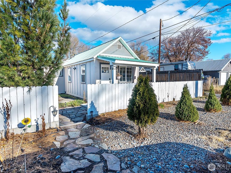 Welcome to this picture-perfect 1-bedroom, 1-bath home that combines cozy living with modern touches. Inside, enjoy a refreshed interior with stainless steel appliances, an all-in-one washer/dryer, and inviting finishes that make the space feel bright and comfortable. A flagstone pathway leads you to the welconing covered front porch—ideal for relaxing and taking in the quiet neighborhood feel Out back, unwind around the firepit, make use of the convenient storage outbuilding, and appreciate the fenced yard with room for outdoor enjoyment. With driveway parking and a low-maintenance layout, this adorable home is ideal for those looking for simplicity, charm, and easy living right in the heart of Kittitas.
