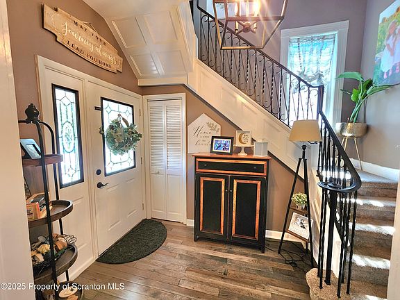 This immaculate, fully renovated home is ready for it's new Dunmore Buck Family! The main floor holds a expansive fully remodeled kitchen, two dining areas and living room, plus a half bath. The second floor has three spacious bedrooms, a full bath to share, and a primary en suite bath that will blow you away! Add in the finished walk up third floor for an additional bedroom or living space PLUS the full finished loft above the TWO car garage, what more would you want!