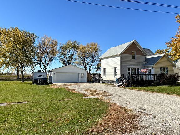 This adorable home sits on a dead-end street in Odell on a large 130 x 125 lot, which includes lots 5, 6, and E30' of 7. This home features 2 bedrooms, with the potential for a 3rd bedroom upstairs. 1 full bath. Up-to-date Kitchen with ample oak cabinets and stainless steel appliances, and an updated high-end modern microwave that all stay. Hardwood floors in the Dining Room and Kitchen. Laundry room off the kitchen. Washer and dryer also stay. Large Living Room with carpet. The downstairs bedroom also has carpet. Walk upstairs to a large Master Suite to take and make it your own. 10 x 10 Bedroom w/ 9 x 15 area off the master. Also upstairs is a 13 x 11 unfinished storage room. Downstairs has so many nice windows to let the sunshine in. Go outside to the 24 x 11 deck overlooking the beautiful backyard with an above-ground pool and a storage shed. Or relax on the front porch and enjoy the view. Another highlight is the 24 x 24 detached garage turn-key man cave. This garage was a gathering place for treasured folks of Odell. It is set up for entertaining.