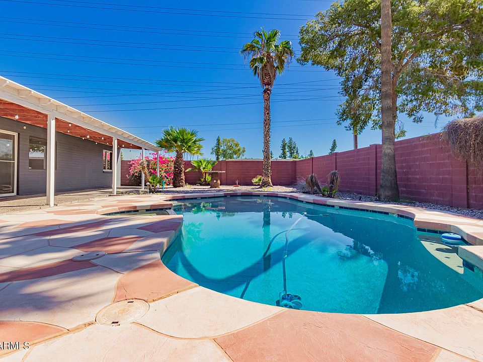 You don't want to miss this lovely pool home nestled in a desirable corner lot in Knoell Tempe! The interior boasts sizable living areas with wood-look flooring, neutral tones, abundant natural light, and sliding doors overlooking the pool. The well-appointed kitchen features ample cabinetry adorned with crown molding, a spacious peninsula with a breakfast bar, and built-in essentials. The main bedroom promises a good night's sleep and displays carpet for added comfort, a walk-in closet, and a bathroom. Out back, your private oasis awaits you, including a covered patio perfect for entertaining, flagstone flooring, a soothing landscape, a relaxing spa, and a sparkling pool! No HOA! Hurry up, this gem won't last!