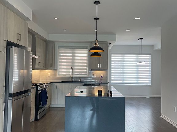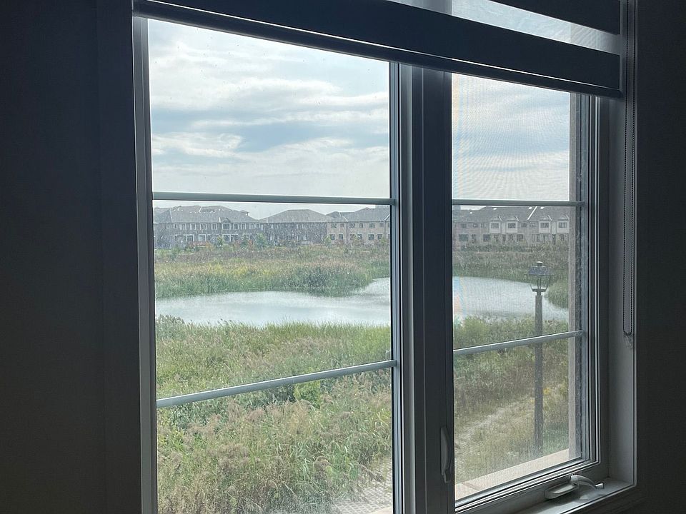 Experience unparalleled waterfront living in this new community. A 4-bedroom, 3.5-bathroom townhouse spanning 2,275 sq. ft. with a double garage (rear lane) on a premium pond-view lot. Featuring 9' ceilings on the main and second floors, hardwood flooring, smooth ceilings, pot lights, and granite countertops throughout, this home offers a gourmet kitchen with high-end appliances, a large island, and a drinking water filtration system, an open-concept dining area with deck access, and a spacious family room with a modern fireplace. A rooftop terrace provides panoramic views of John McKay Pond, while smart home features include a thermostat and entry locks. Ideally located near Costco, the future T&T (2026), and just 3 minutes walk to the new primary school, with convenient access to Hwy 403/407/QEW, shopping, and public transit.