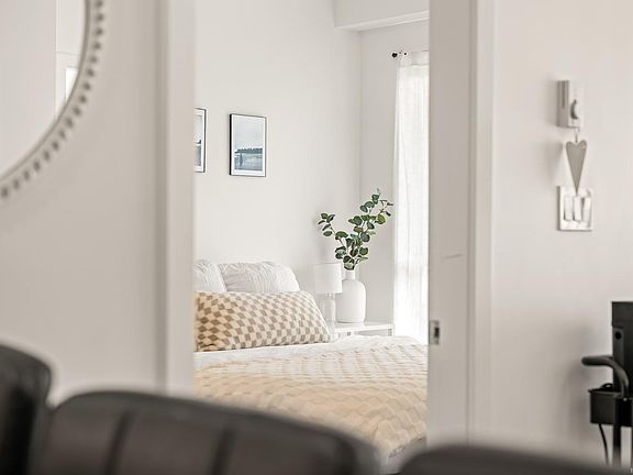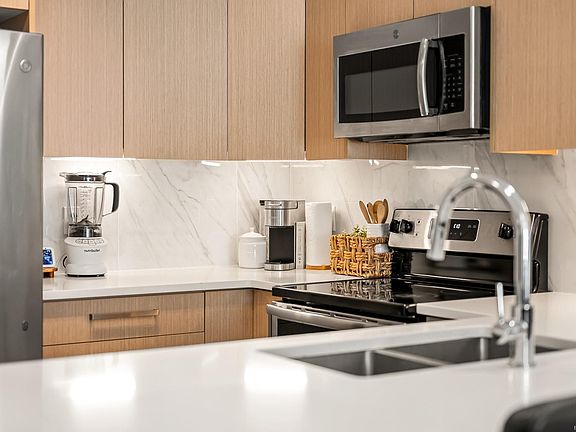 Open concept floor planStylish kitchenStainless steel appliancesPlenty of cabinet spaceGenerous south-facing patioSpacious primary bedroomWalk-through closet