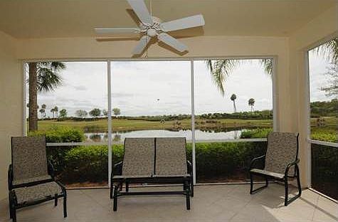 END UNIT with remarkable Eastern Exposure- ultimate Privacy! This home is surrounded by tropical landscaping and has great lake and champion golf course views. This beautiful 2 BR, 2BA plus Den, lanai with diagonal tile and 2 car garage is worry free Florida Living. The Master Suite is spacious with a large walk in closet and great view. The Master Bath features dual sinks, shower and large soaking tub. In addition to the Den, the Formal Dining Room space provides for flexible options. A short walk out the front door to the pool/spa/fitness/BBQ and rec center facility that is exclusively for the residents of this subdivision. You also get to enjoy 9 plus miles of biking/hiking nature trails along the Orange River. Master HOA provides use of kayaks to enjoy the Orange River with leisure. Optional Private Country Club complete with 2 championship golf courses, restaurant along with state of the art fitness and tennis facilities. Brokered And Advertised By: RE/MAX Realty Group Listing Agent: Susan Sweeney