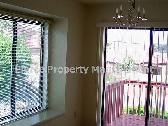 One of the best view condos in Montana Terrace! End unit with deck looking out to Granite Mountain and twinkling City lights. Nice strip of open space before the next neighborhood too! Laminate wood flooring, carpet 2 years old, well maintained! Master bedroom with extra niche for an office/hobby space. Walk to trails, close to shopping and medical services. All appliances stay! HOA fees a low $153/mo.