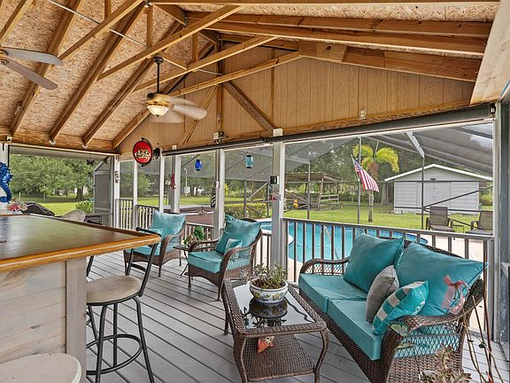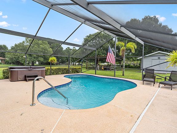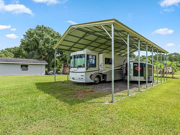 Towering oaks greet you as you pull down the paved driveway to this pristine home. This move-in ready, super private 3/2/2 home on1.85 fenced acres is set up to entertain with a solar heated, screened pool, covered deck and custom eat at wetbar! Bring the RV! 24 x 41 RV carport with 30 amp electric and water on a pad . Separate 24 x 16 workshop. Kitchen has custom cabinets with soft close, dovetailed drawers and lazy susan. New Security system complete with 7 cameras and CO & fire detector systems. Windows, Hardiplank & stucco new in 2020. Septic redone 2015, Master bedroom & bath-renovated in 2021-includes a fantastic new shower & closet with built-ins! Fresh paint, Tile floors & luxury vinyl throughout. Hurricane shutters, doggie door on deck, too many extras to list! Schedule online
