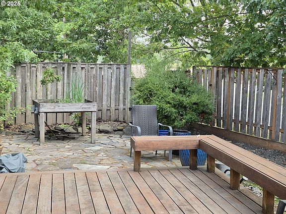Cozy gas fireplaceStylish touchesFully fenced backyardDeck and stone patioInviting family roomSunny eating nookVaulted ceilings