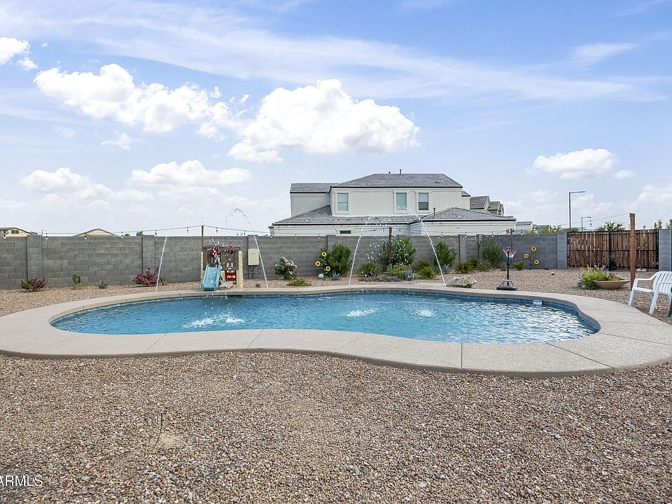 Welcome to this 4-bedroom, 3-bath home offering bright, open living spaces highlighted by tall ceilings and abundant natural light. The expansive kitchen features granite countertops, a breakfast bar island and opens to a spacious great room ideal for everyday living. A large loft upstairs creates a versatile retreat. Primary suite has a huge walk-in closet and dual sink vanity. The true showstopper is the backyard, featuring a resort-style pool with water features, shaded pergola, and ample room for entertaining.. A perfect blend of modern comfort and outdoor lifestyle in one inviting package.