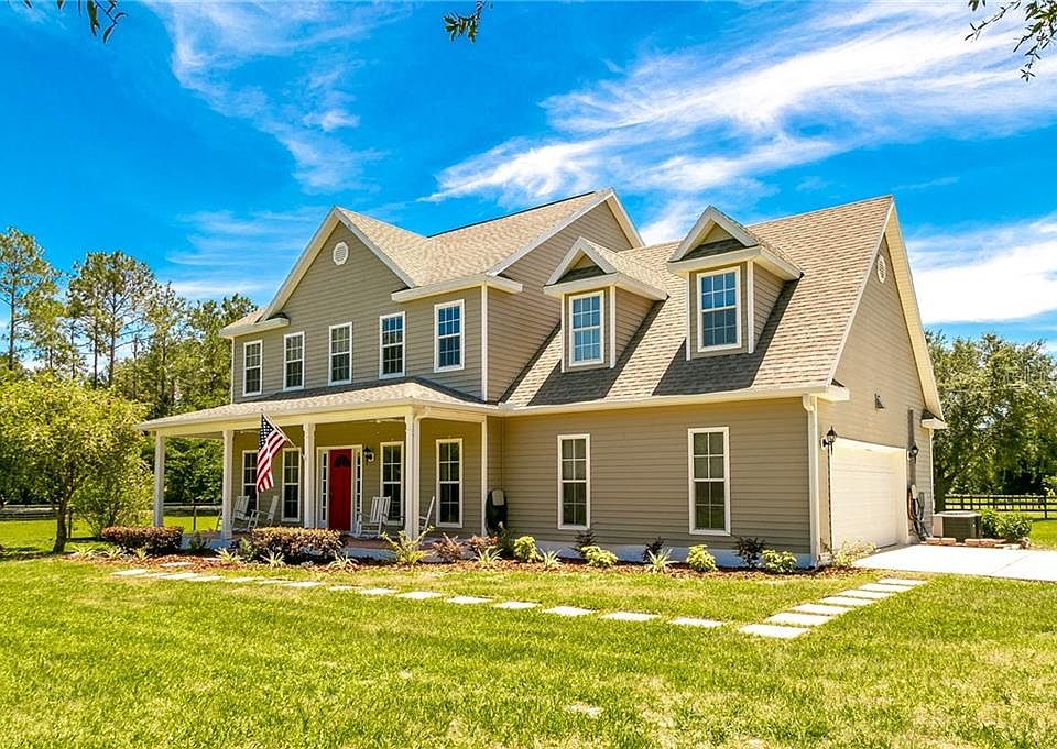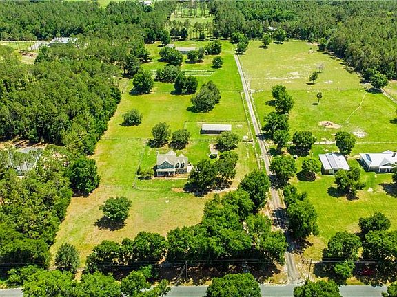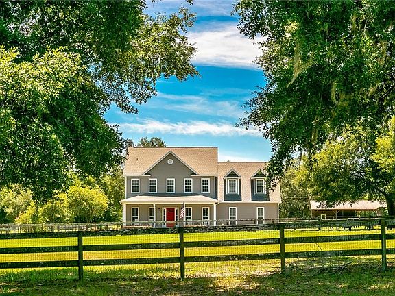 Gorgeous, 4 bedroom, 2 1/2 bath home on 5 acres in Dade City. This home features sprawling property with double entry gates, a three stall barn with two storage rooms (option for a 4th stall currently used for storage), and perimeter fence that has been cross-fenced into two large paddocks and one smaller paddock. Inside, a welcoming living room features wood flooring and a wood burning fireplace. French doors lead to the 14x10 family room and eat-in kitchen. The kitchen offers stainless steel appliances, breakfast bar, closet pantry and a 15x9 dining area overlooking the backyard and patio. Down the hall, there's a powder room, laundry room, and access to the two car garage. Upstairs, the 14x16 master suite features a huge, 14x13 en-suite bathroom with dual sinks, jacuzzi tub, separate shower, and 10x6 walk-in closet. Bedrooms 2 and 3 are just down the hall, along with a full guest bathroom. The 21x19 4th bedroom could also be used as a bonus room. Other features include an 11x13 first floor office, water softener, and two 3 ton AC units. This home is located in the desirable Blanton area and is just 2.6 miles from exit #293 on I-75.