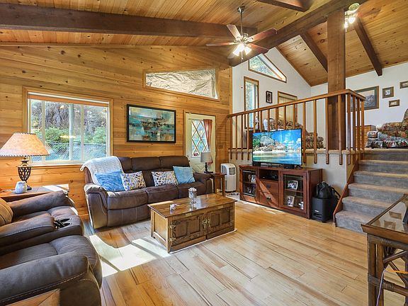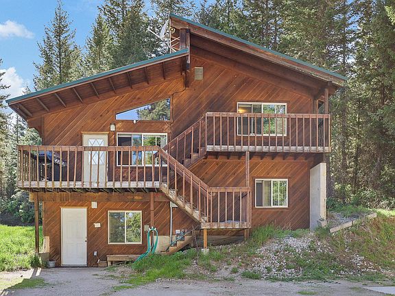 Escape the hustle & bustle of city life and embrace tranquility. Situated on 10 heavily treed acres this home offers the perfect blend of privacy and natural beauty with no visible neighbors. The property is bordered by a large section of timber co land; and the adjoining 70 acres bordered by State land is also available for 80 acres of convenient seclusion. The bright and airy living spaces are complimented by soaring cathedral ceilings and natural lighting. The spacious eat-in kitchen includes all appliances, plenty of counter space and includes an entrance to the deck. The primary bedroom located on the upper level offers double closets, full bath and a sitting area/office. Need storage? No problem! There is a 3-car garage, a 2nd 720sq ft shop with a 14' door & 2 large storage sheds on the property as well as a 300 gallon fuel tank and a green house; Fiber optics are installed and 2 wells. Located approx. 10 miles from Newport and within an hours drive to Spokane.  No CC&R's or HOA to contend with.