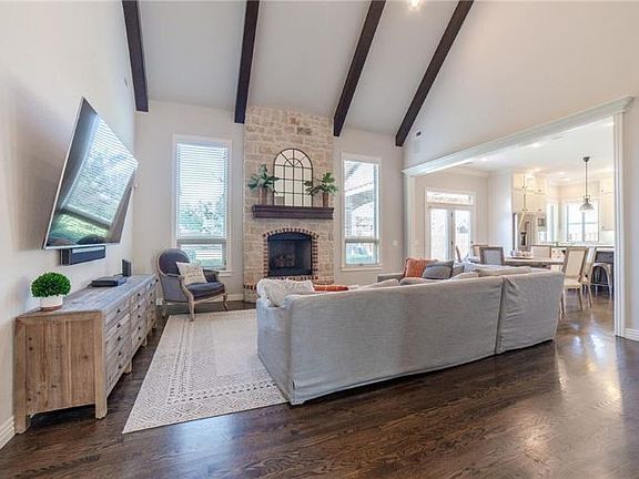 Thoughtfully designed custom home in the gated community of Oak Tree. Open concept layout with stunning Kitchen complete with double ovens, gas cooktop, island, and large walk-in pantry. Two-story Great Room with exposed beams and fireplace, Formal Dining Room, Mudroom with Cubbies and Laundry with space for Refrigerator. Large Master Suite with tray ceiling, jetted tub, walk-in tiled shower and closet with built-ins. Second Bedroom with Full Bath on main floor. On the second level is a fully equipped Media Room with wet bar, three bedrooms and two full baths. There is also an abundance of attic storage. This home has all the extra features you want including media projection, home audio, central vac, security system, nest thermostats, video doorbell and more. Large flat yard with covered patio with drop shades and fire pit. Walking distance to neighborhood amenities include a resort-style pool, community center with lounge area and workout facility, a?tennis basketball sport court, and playground.