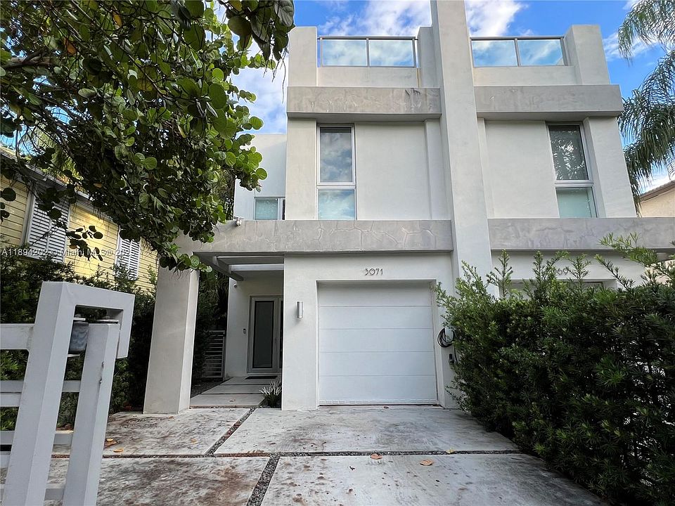 Luxurious Contemporary Living Coconut Grove Townhouse! High-grade designer finishes and open floor plan. This 3 bedroom, 3 bathrooms, 1 car garage and 2 guest spaces has ultra-modern fixtures and floor-to-ceiling impact glass. Beautiful terrace area with pool and lots of space. Private rooftop terrace with a high-end barbecue, wet bar, views of lush landscaping and tropical neighborhood. 2,300 Sq Ft plus Pool Area Terrace and a 950 Sq Ft Rooftop Terrace!