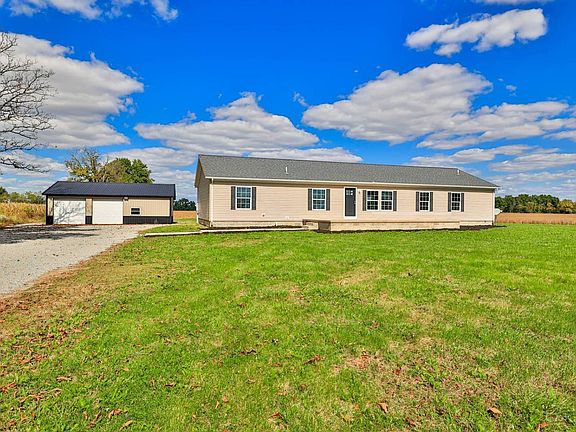 Wow! Rare 5 bedroom 3 FULL bath country home on 2 acres with 30x40 pole barn. Quiet peaceful location surrounded by farm field yet close to town. Beautiful kitchen features new granite countertops and stainless steel appliances plus custom island with stone and counter bar. Family room features sharp built-in entertainment center. All new premium laminate flooring and carpet throughout. All 3 bathrooms nicely updated. Brand new wooden deck overlooks huge barn and adjoining fields. Pole barn is very nice with oversized doors, electric service, and concrete floor. Home is 2280 sq ft and move in ready!