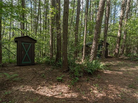 The main cabin features rustic living with a wood stove for heat and a cozy layout ideal for relaxing after a day outdoors. There is no water, septic, or electric, giving you the chance to enjoy a true off-grid lifestyle. Additional structures include a detached bunkhouse for extra sleeping space, a storage shed, and a traditional outhouse.